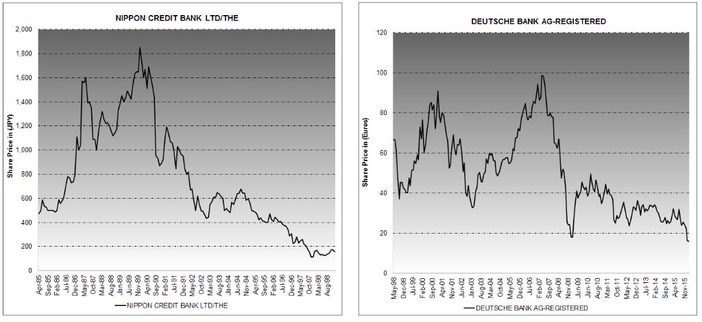Our predictions from that time drew heavily from what had happened after the 1990 Japanese banking crisis showing that after the valuation bubble had burst, banking stocks collapsed by 70-80% before recovering to some degree and then spending the next 20 years going nowhere to drifting lower.