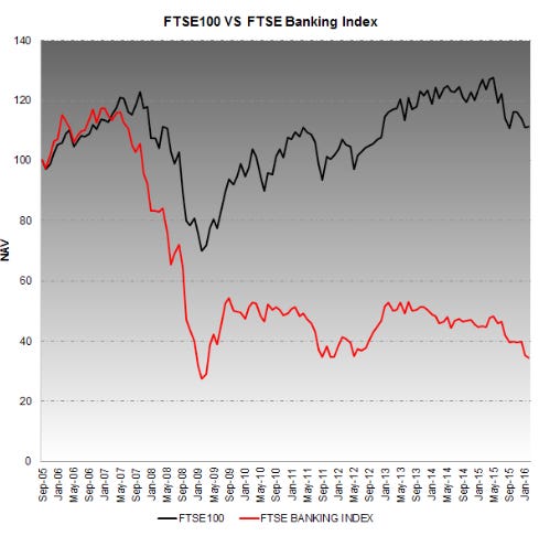 The reality is that the banking crisis of 2008 is still playing out. Despite all the new capital raises, the government bail outs, and the new regulations banks are still struggling to make enough money to cover the continual write downs of the loan book even with the economic recovery that every politician has been championing.