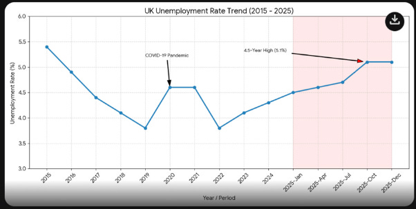 Everywhere I go, I hear the same-Headcount is sensitive. Ie. Very, very difficult to justify! Whether it is the rising costs of National Insurance and minimum wage levels, especially for the younger workers or real concerns about the Employer Rights Act that became law in December- companies, large and especially small are not hiring and actively shedding staff to cope. Official figures show the number of payrolled employees has fallen by 187,000 in the 12 months to October 2025 and continuing to fall as the unemployment rate rises above 5%. The remaining options of finding a job in the public sector or going on the dole, both at least benefit from minimal workloads and loads of sick days is not the best plan for UK growth potential.