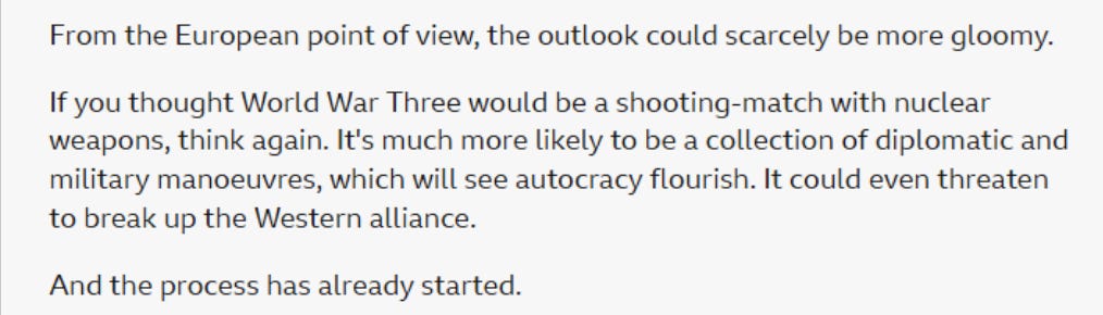 Of course, it does seem even more farcical that Sir Keir Starmer is trying to engineer a reverse Brexit policy just at a time when Europe and the single currency looks more prone to failure than at any time in its 25-year history. Throw in the US keen to reduce NATO commitments and Russia resurgence and easy to argue that the worse place to be for all reasons is Europe.